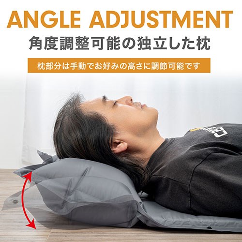 ・独立した気室の枕付き。枕部分は手動でお好みの高さに調節可能です。