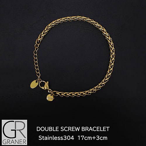 GRANER グランナー ステンレス ダブルスクリューブレスレット 男女兼用 メンズ&レディース 17+3cm ゴールド GR-116 代引不可