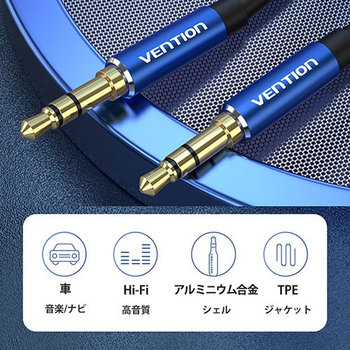 VENTION 3.5mm Male to Male オーディオケーブル 5m アルミニウム合金 ブルー BA-4445 代引不可