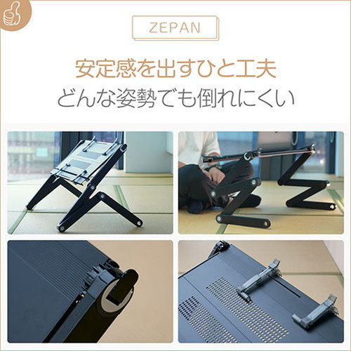 ●使用方法:本PCスダンドは、360°調整ジョイントが設置しえており、自在に変形するヒミツは、4つのジョイント!最大360°まで微調整が可能なので、思いのままにデスクの形を変えることが出来ます。天板のジョイントは、片側だけについており、ツメを倒すことで自由に調整が可能です。お好みの角度になりましたら、ツメを元の状態に戻してください。3つのアームジョイントには、角度表示があります。左右のジョイントの角度を合わせて頂くと、簡単に左右対称に設置することが可能です。なお、中央のボタンを押し込んでいる間、自由にアームの角度を調整頂けます。調整完了後は、ボタンから手を離して頂くと、再びロック状態に戻り、アームが固定されます。