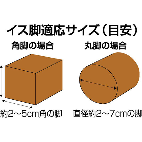 ・適応サイズ(目安):丸脚/直径約2〜7cmの脚、角脚/約2〜5cm角の脚