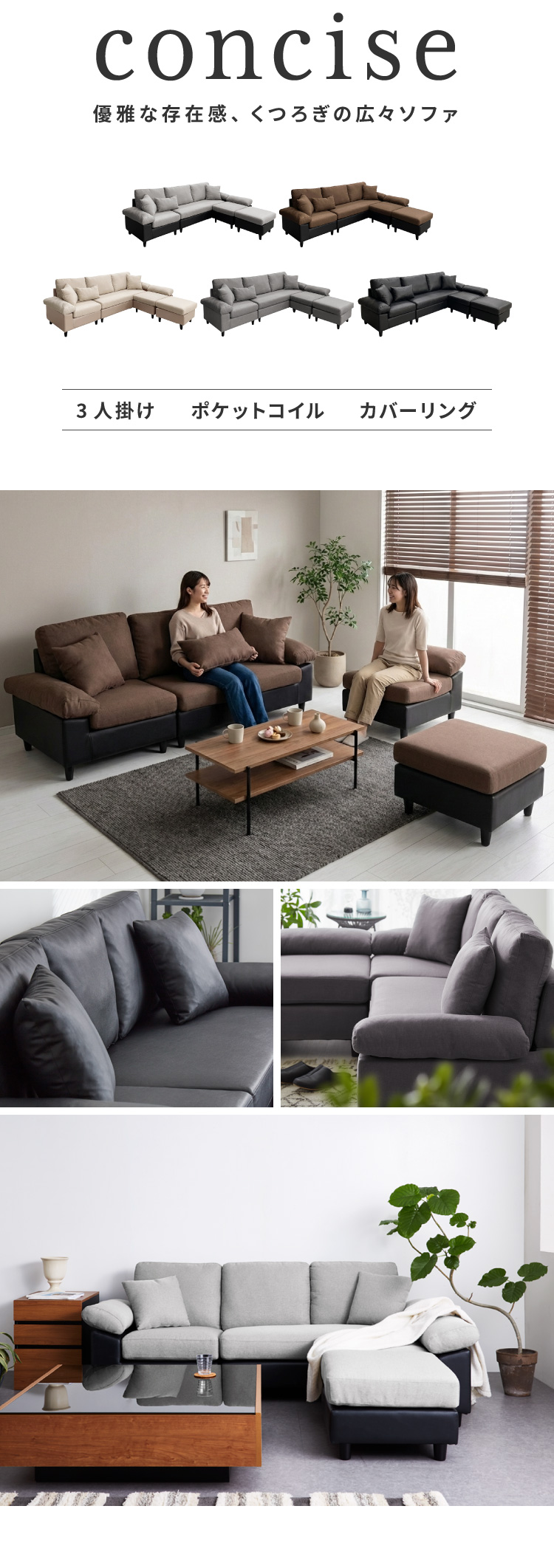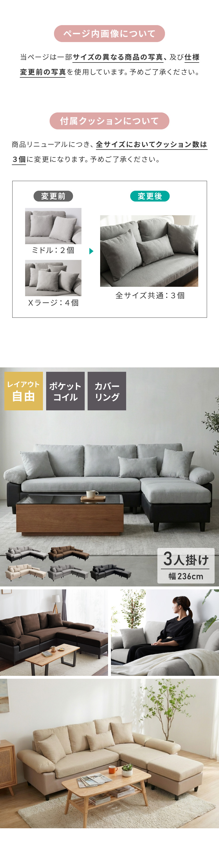 カバーリング ソファ 3人掛け 洗える 幅236 L字型 クッション オットマン コーナーソファ ポケットコイル 天然木 大きめ おしゃれ 北欧 レザー 代引不可