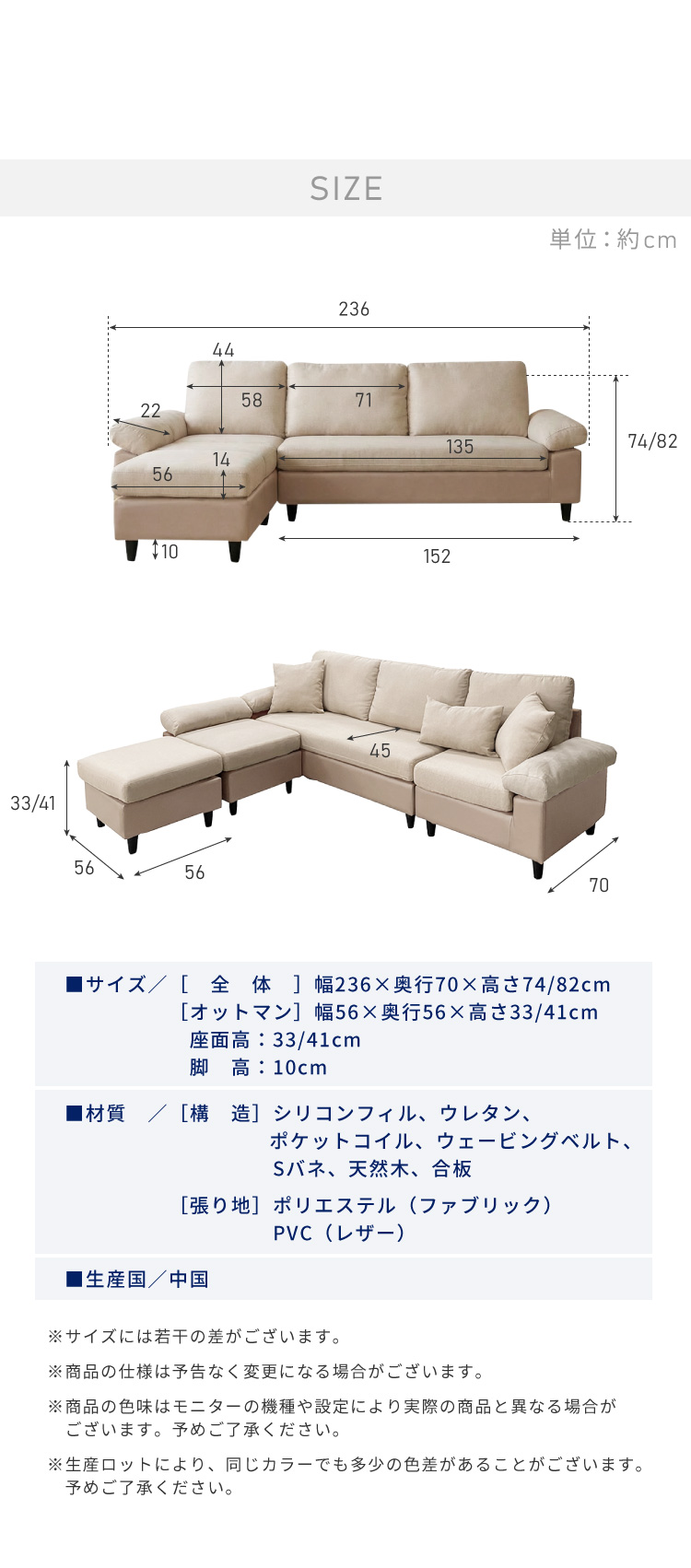 ※生産ロットにより、同じカラーでも多少の色差があることがございます。ご了承ください。