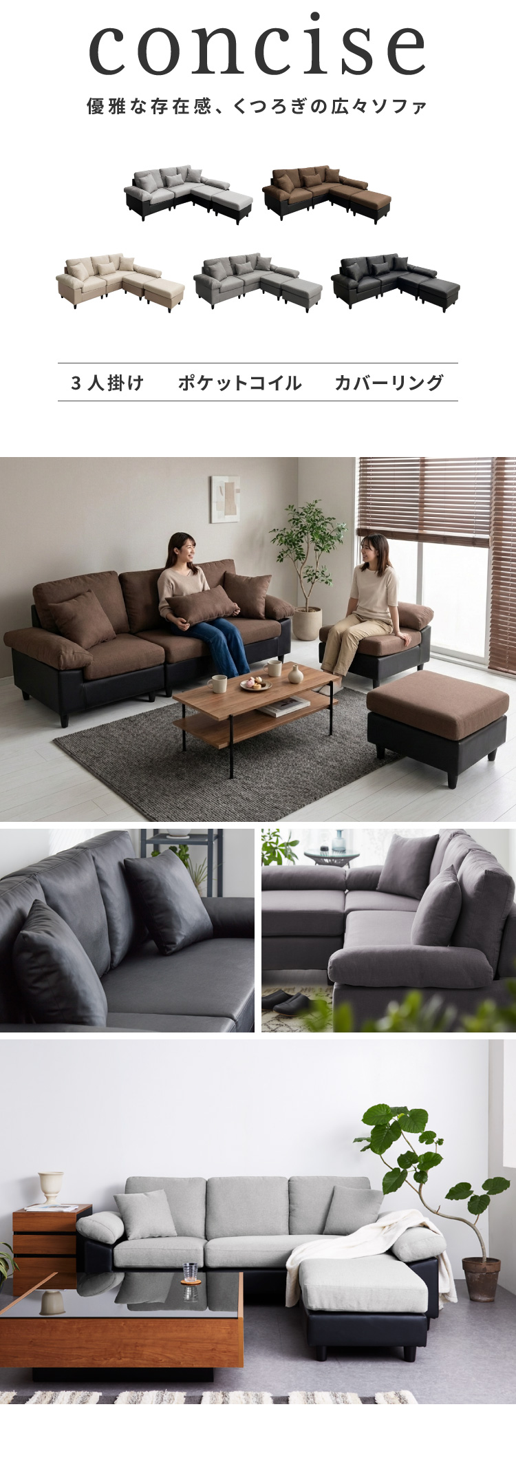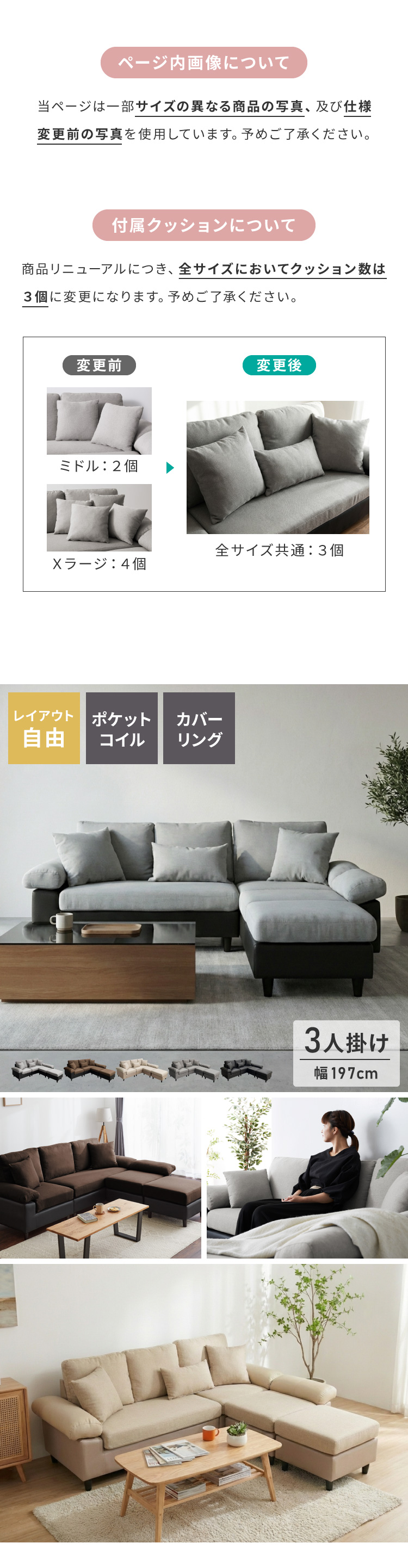 カバーリング ソファ 3人掛け 洗える L字型 幅197 クッション オットマン コーナーソファ ポケットコイル 天然木 大きめ おしゃれ 北欧 レザー 代引不可