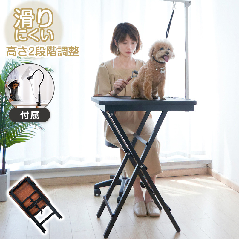 トリミングテーブル 折りたたみ ドライヤースタンド付き 60×45cm 高さ調節 滑り止め コンパクト 犬用 ペット用 シャンプー カット ブロー