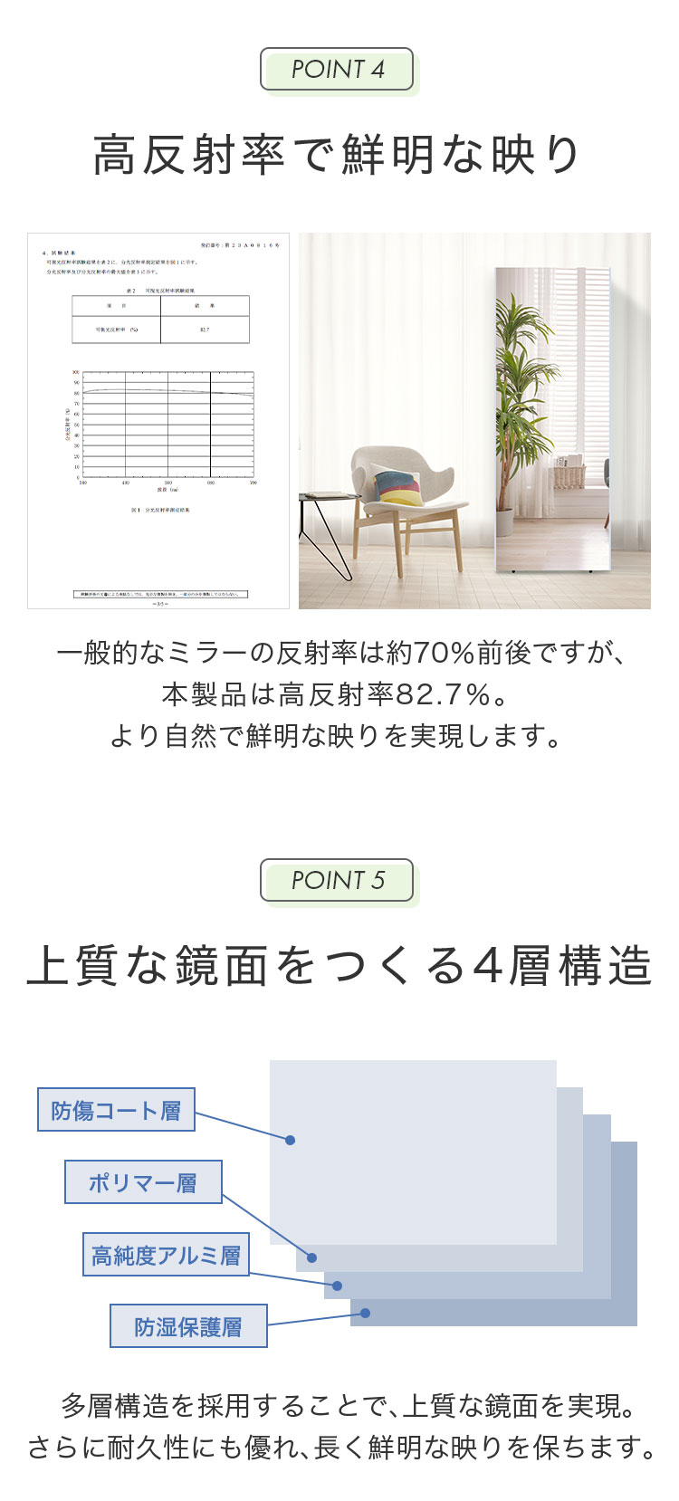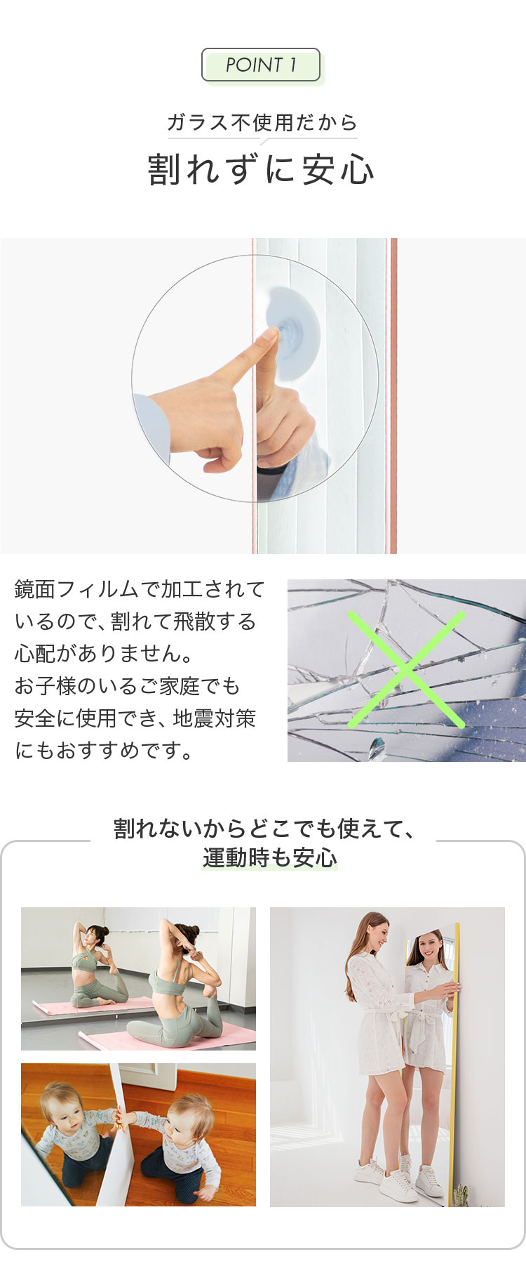 brisafe 割れない鏡 スタンド 60×180cm 割れない おしゃれ シンプル 鏡 ミラー スタンドミラー 全身鏡 高反射率 飛散防止 防災 鮮明 安全
