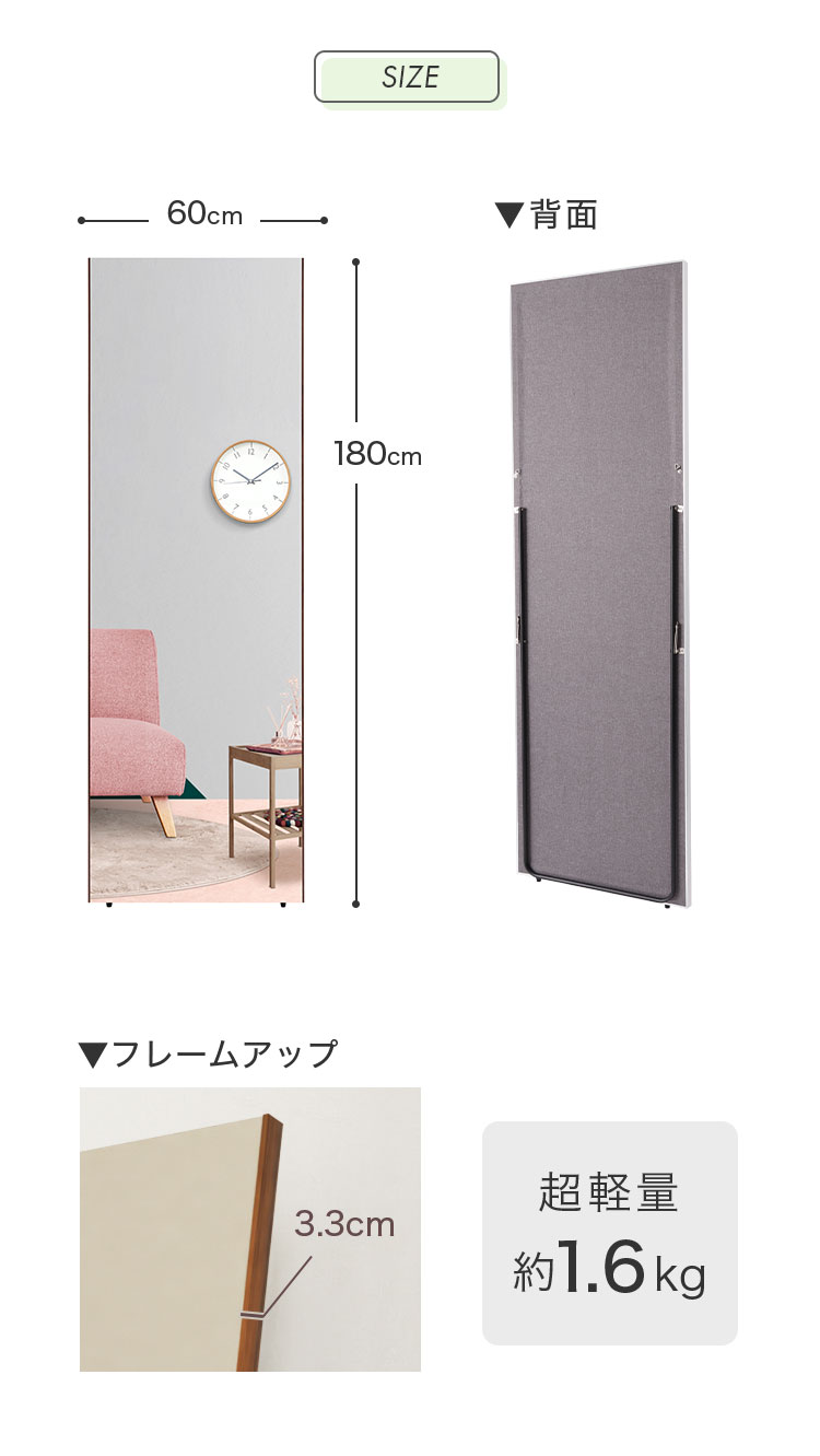 (約)幅60cm×高さ180cm×奥行き(厚さ)3.3cm