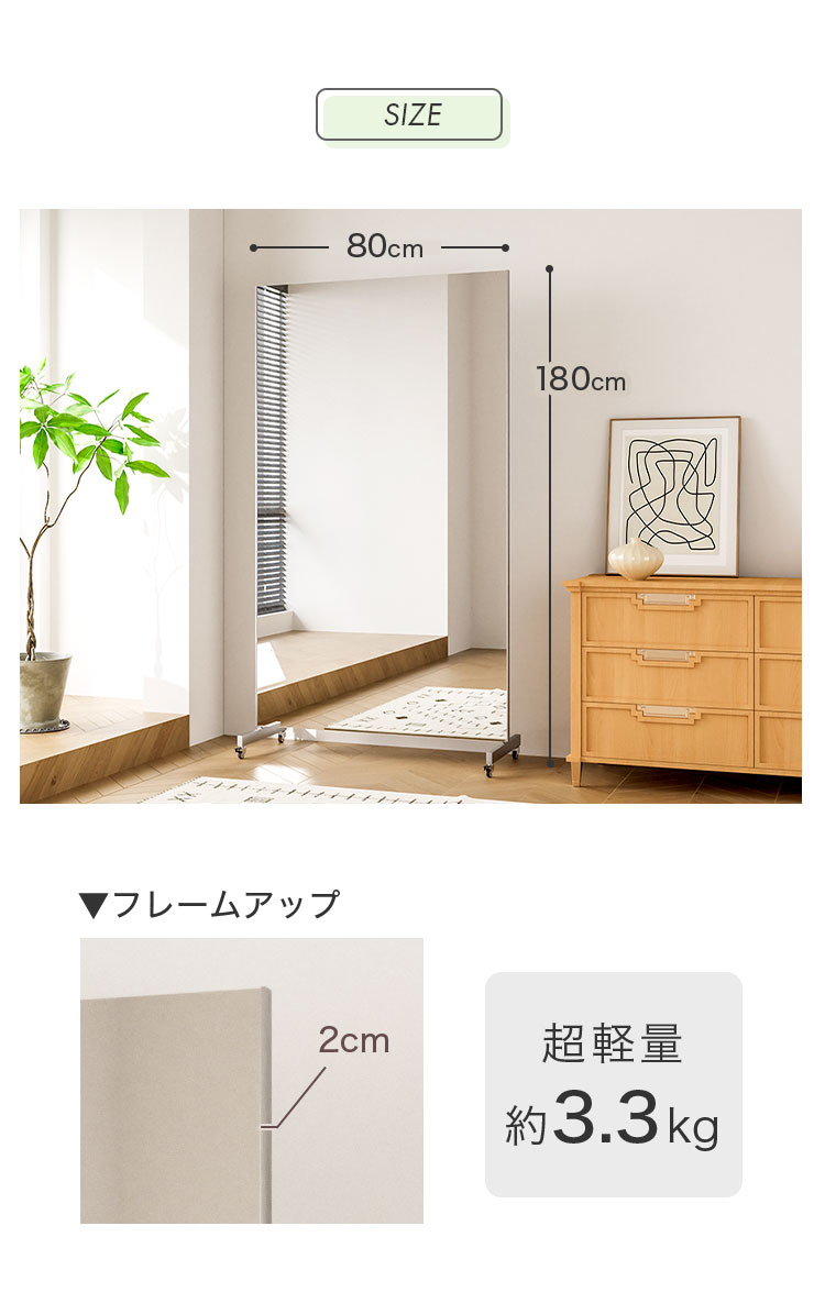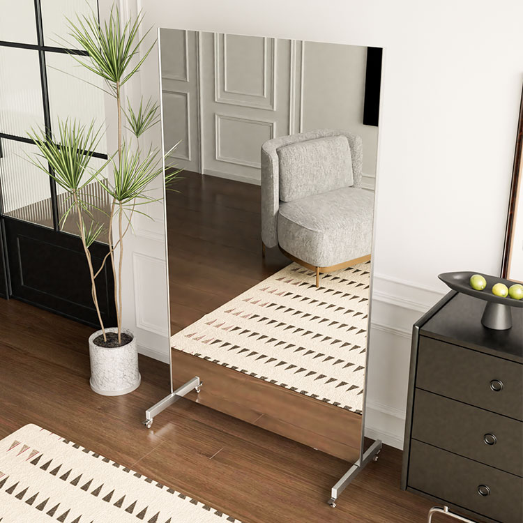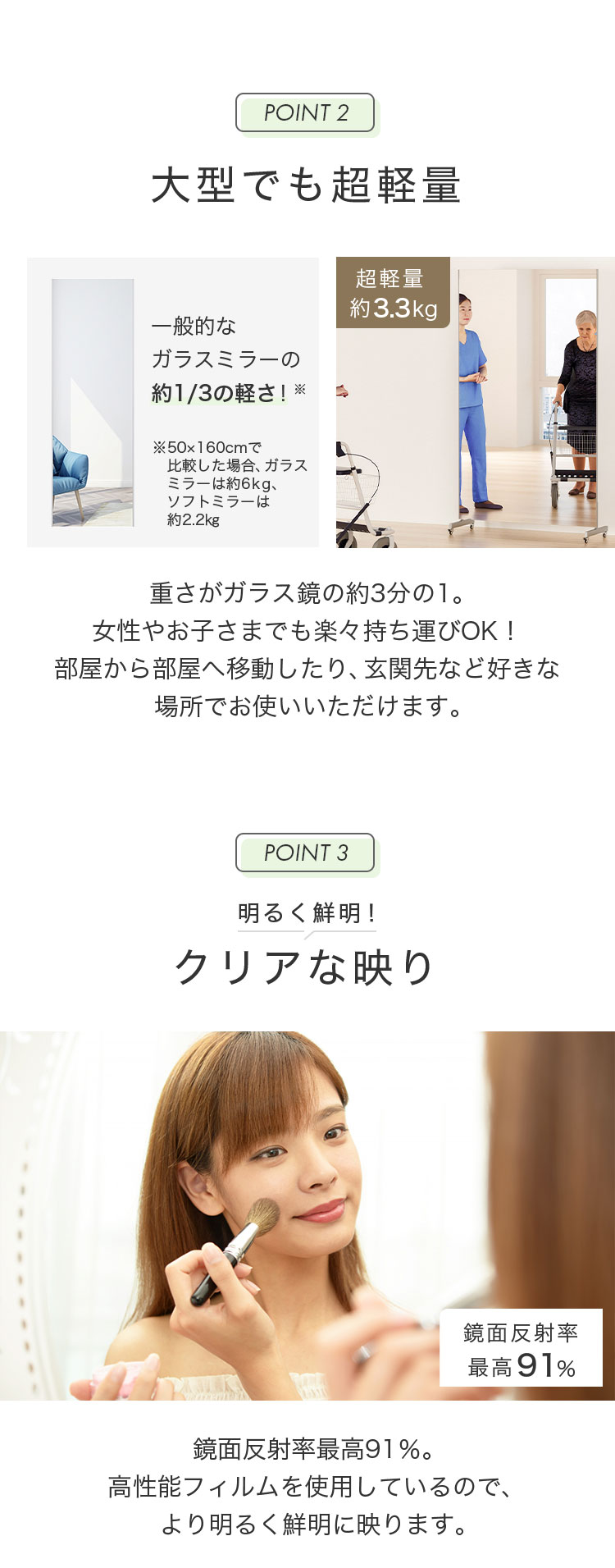 ソフトミラー、ソフト、幅80cm、高さ180cm、キャスター付きミラー、移動、立て掛け鏡、スタンドミラー、全身ミラー、薄型ミラー、薄型、大型、フィルム製、フィルムミラー、ソフト、鏡、ミラー、メイク、ファッションチェック、運動、ヨガ、ダンス、リハビリ、鮮明、高反射率、軽量設計、おしゃれ、かわいい、韓国インテリア、シルバー、飛散防止