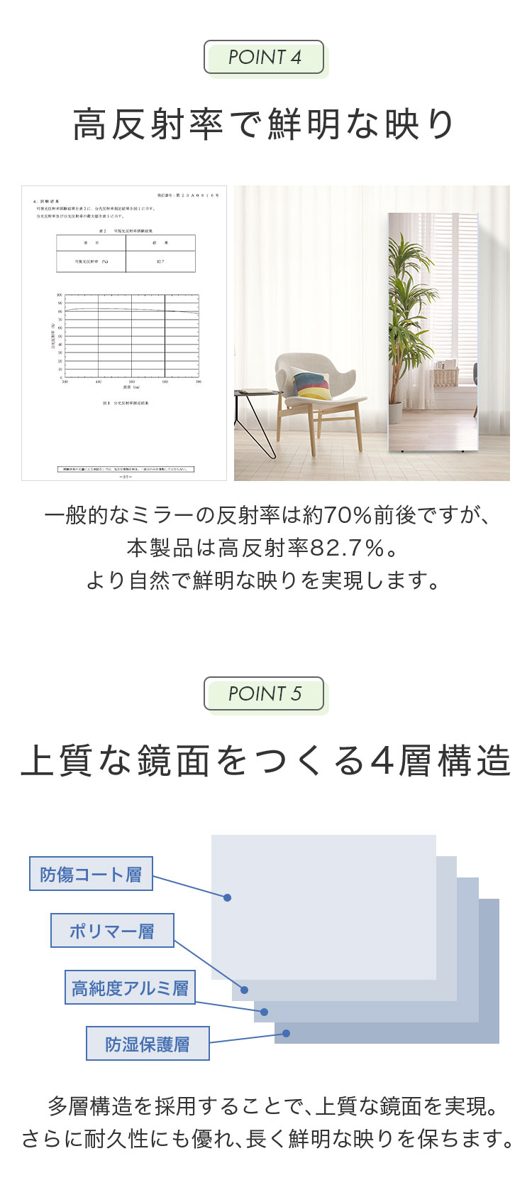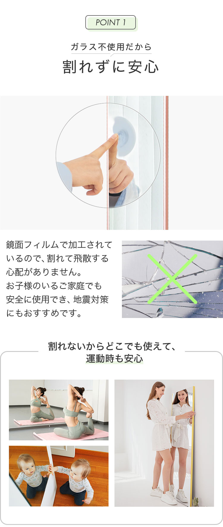 brisafe 割れない鏡 キャスター付き 80×180cm 割れない おしゃれ シンプル 鏡 ミラー ダンスミラー 全身鏡 高反射率 飛散防止 防災 鮮明 安全