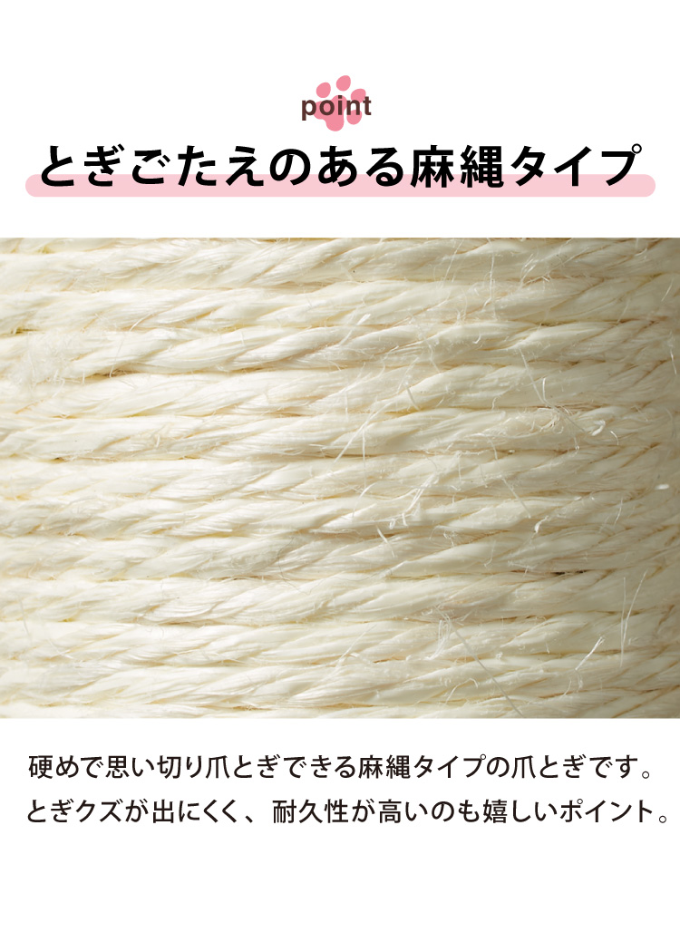 ・爪が引っ掛かりやすい麻素材なので思う存分爪とぎできます