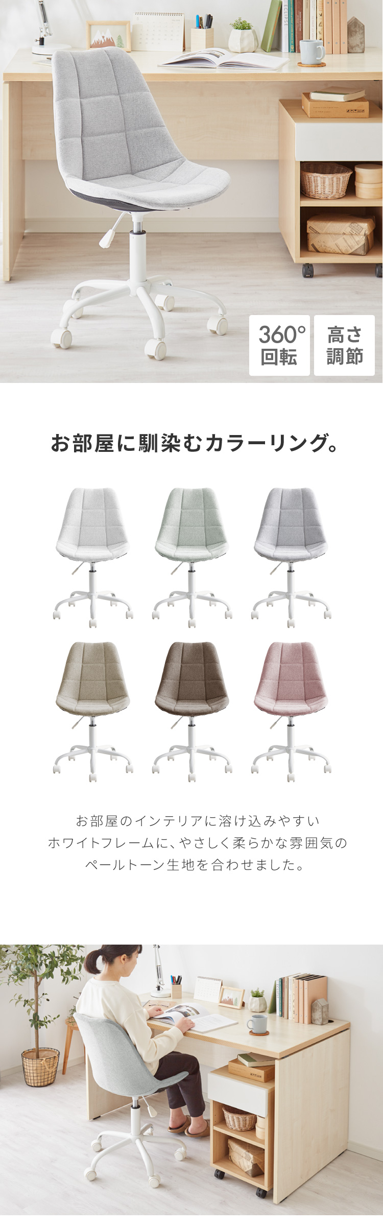 オフィスチェア おしゃれ キャスター付き 昇降 回転 背もたれ 肘なし 1脚 モダン かわいい パソコンチェア デスクチェア 椅子 イス 学習イス チェア