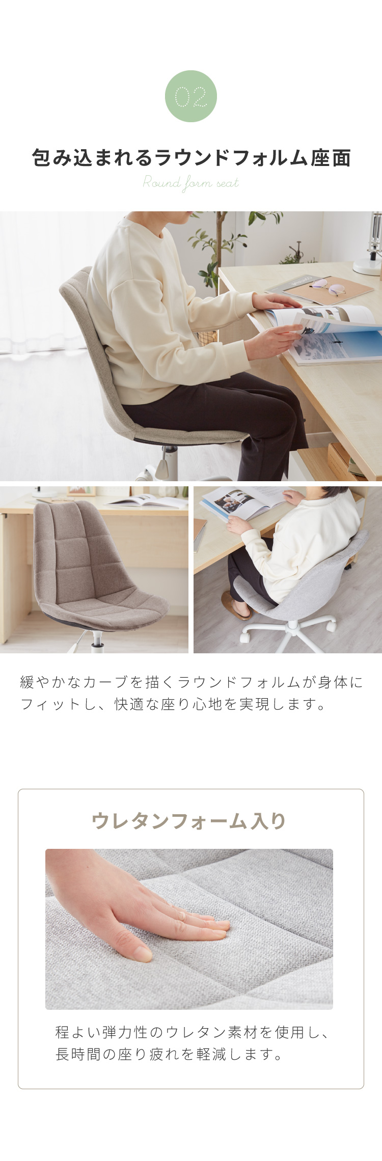 ・身体にフィットする座面デザインで長時間座っても疲れにくい