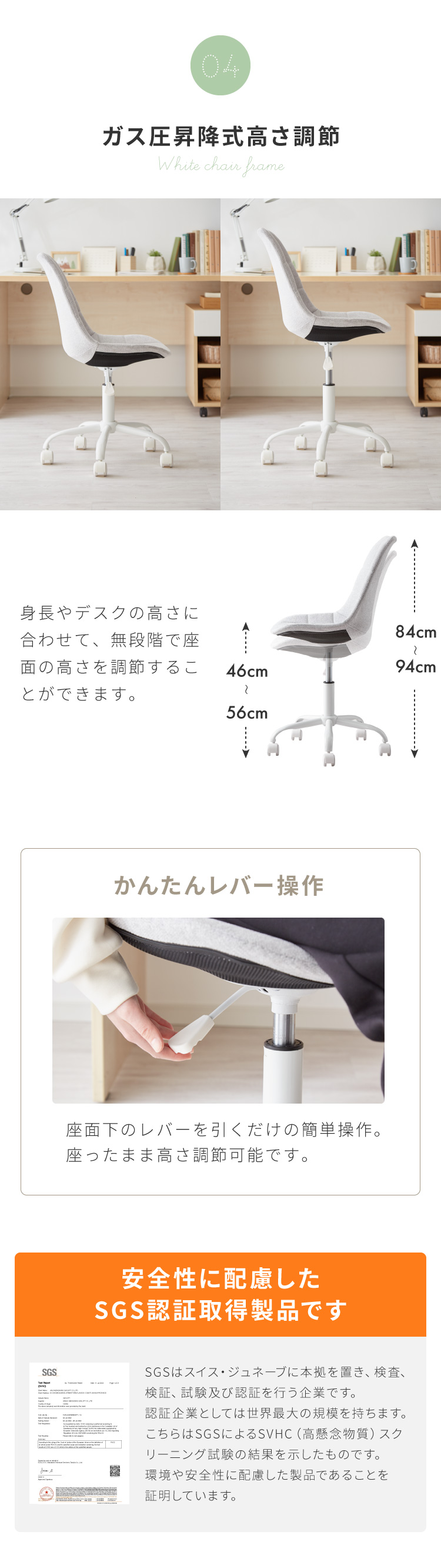 座面高さ46〜56cm