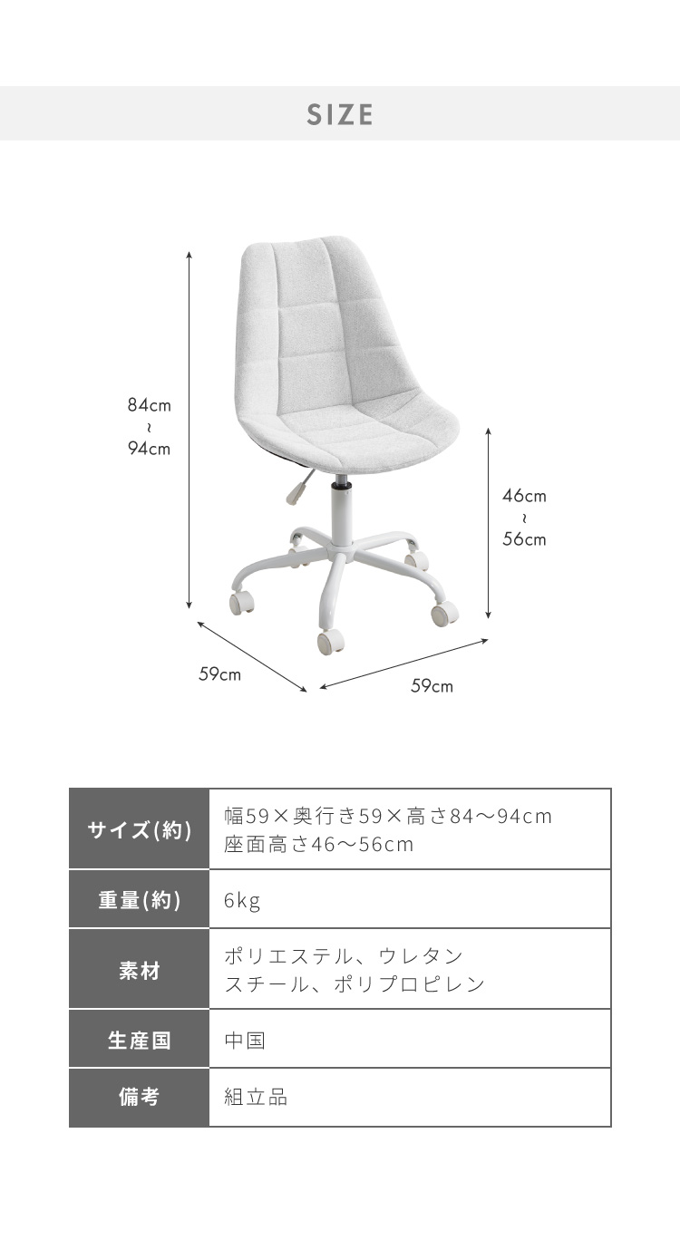 幅59×奥行き59×高さ84〜94cm