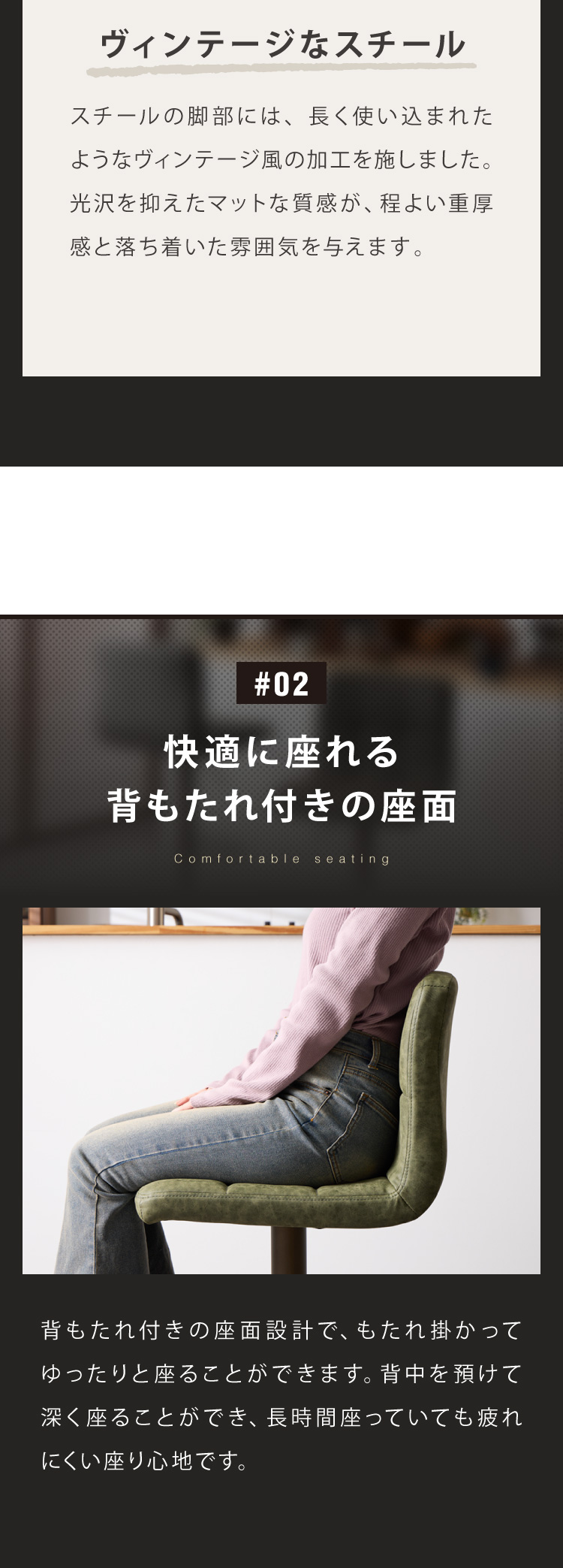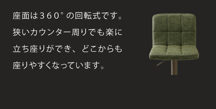 カウンターチェア、ガス圧、回転式、昇降式、ガス圧昇降、背もたれ付き、レザー、ヴィンテージ、PUレザー、ナチュラル、モダン、スチール、ミッドセンチュリー、北欧、おしゃれ