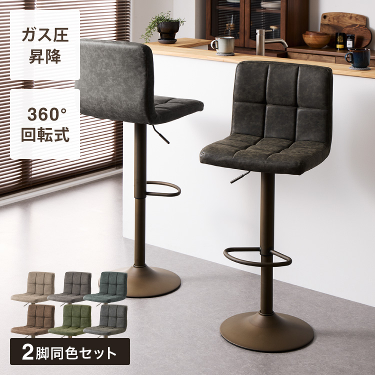 カウンターチェア おしゃれ 2脚セット ガス式 昇降式 ヴィンテージ レザー 背もたれ付き 回転 北欧 バーチェア レビュー報告でコースターとナプキン