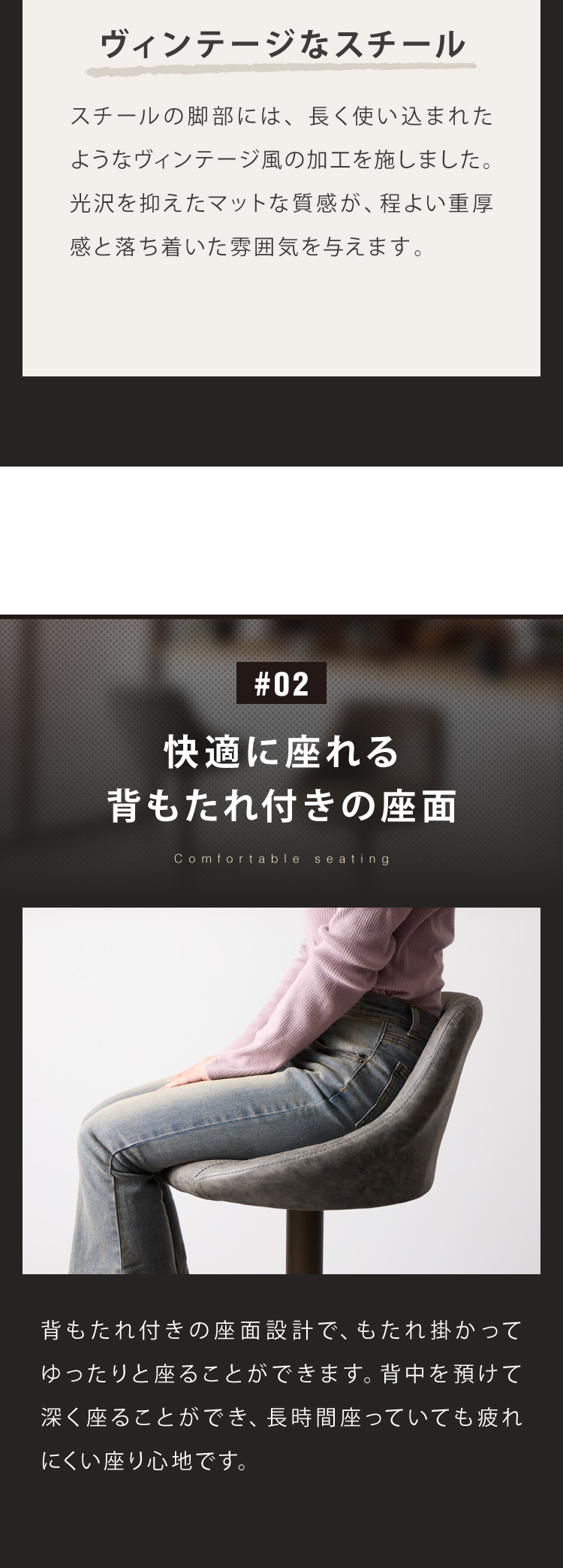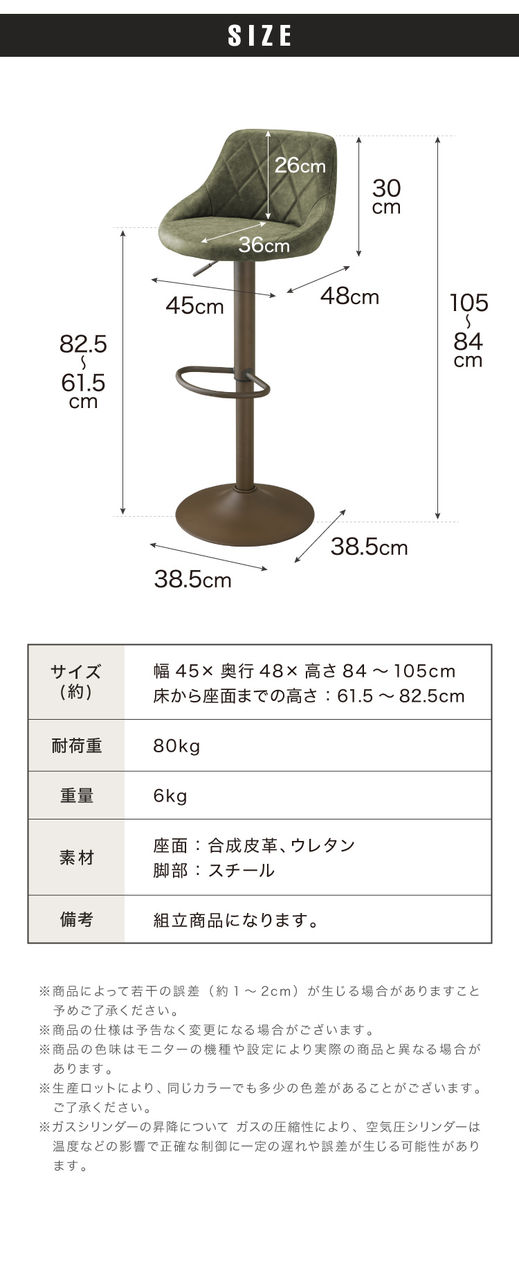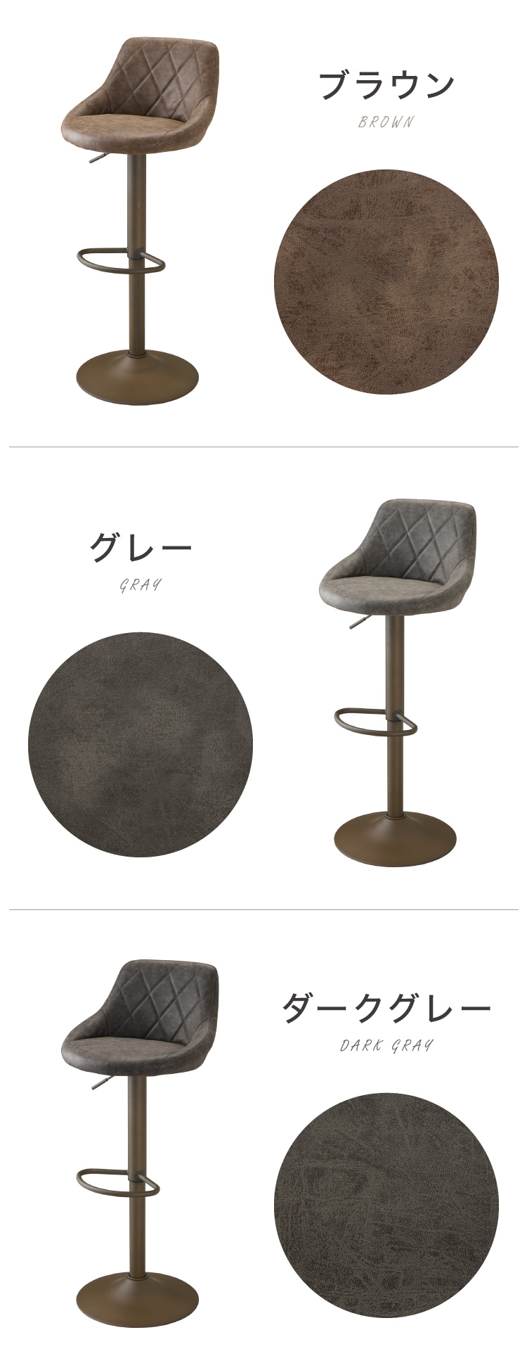 カウンターチェア、ガス圧、回転式、昇降式、ガス圧昇降、背もたれ付き、レザー、ヴィンテージ、PUレザー