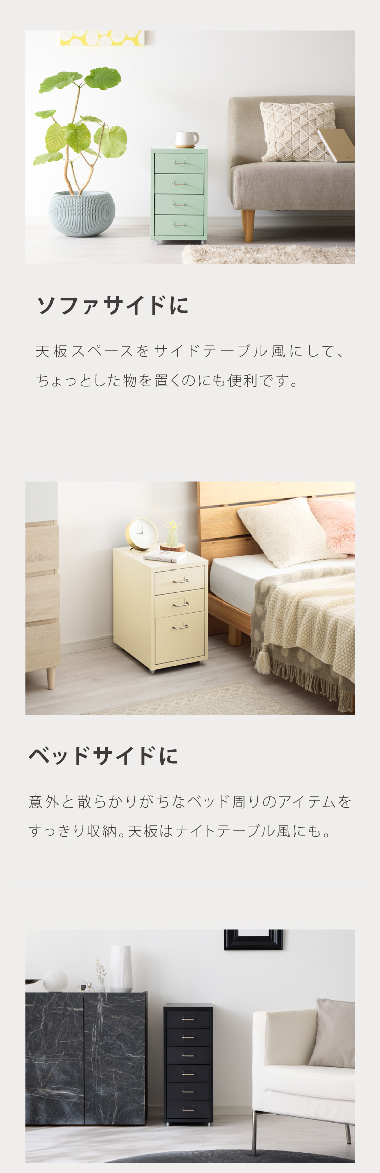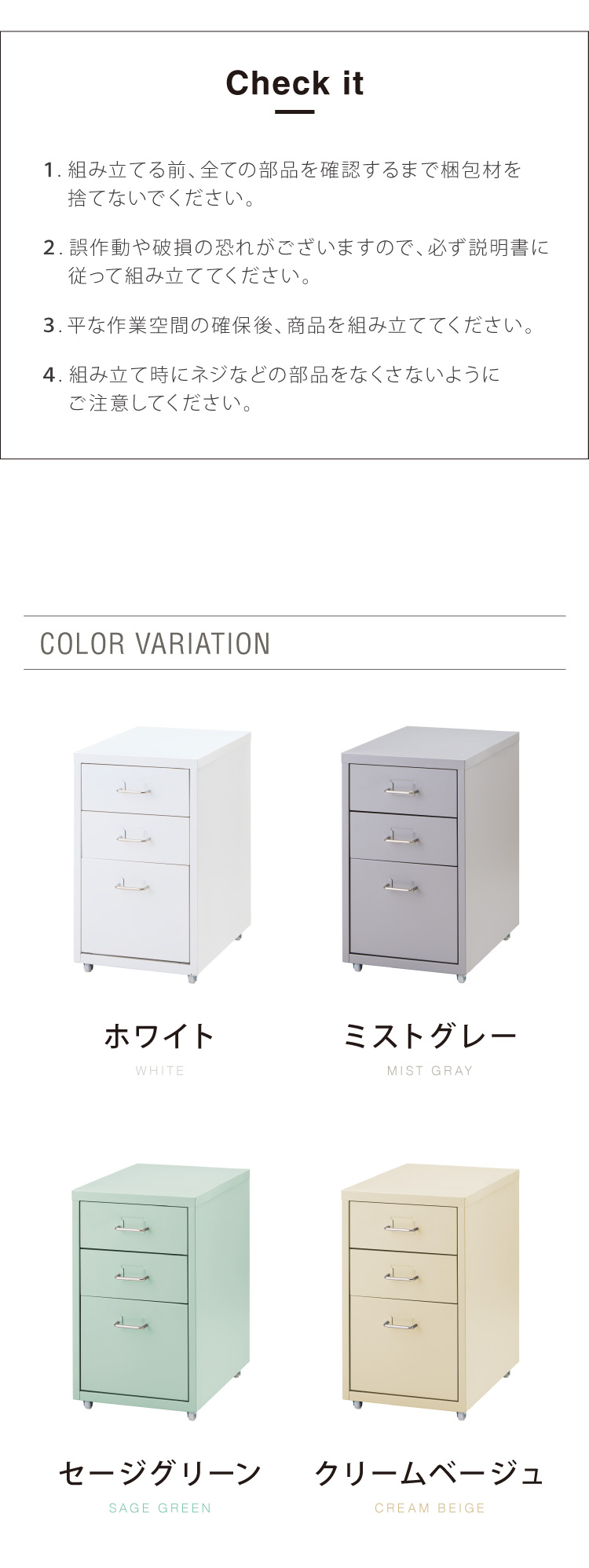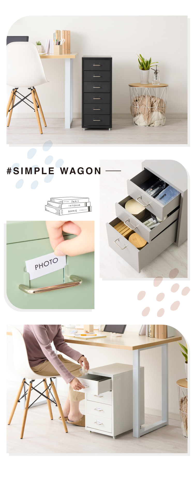 各引出しにはラベリングスロットが付いており、収納物の分類や位置決めが簡単にできます。書類やアイテムの収納という基本的なニーズを満たすだけでなく、スペースの有効活用やアイテムの整理整頓にも役立ちます。。