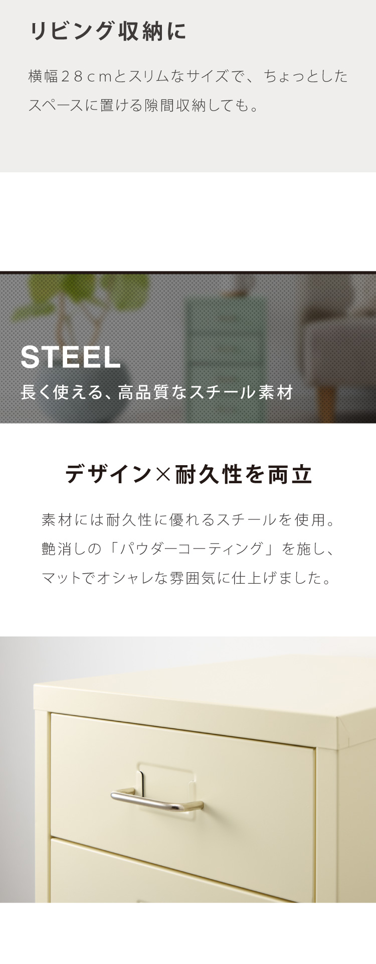 ・引き出しそれぞれにラベルホルダー付き。文房具・書類などの整理に最適。