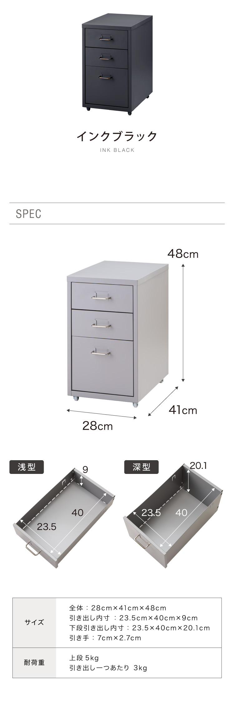 下段引き出し内寸:23.5cm×40cm×20.1cm
