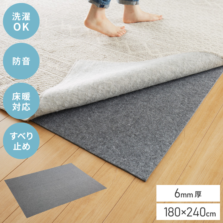 ラグ 下敷き 厚手 洗える 180×240cm 6mm 防音 床暖房対応 滑り止め 耐熱 カットOK シンプル 無地 モダン 一人暮らし ラグマット