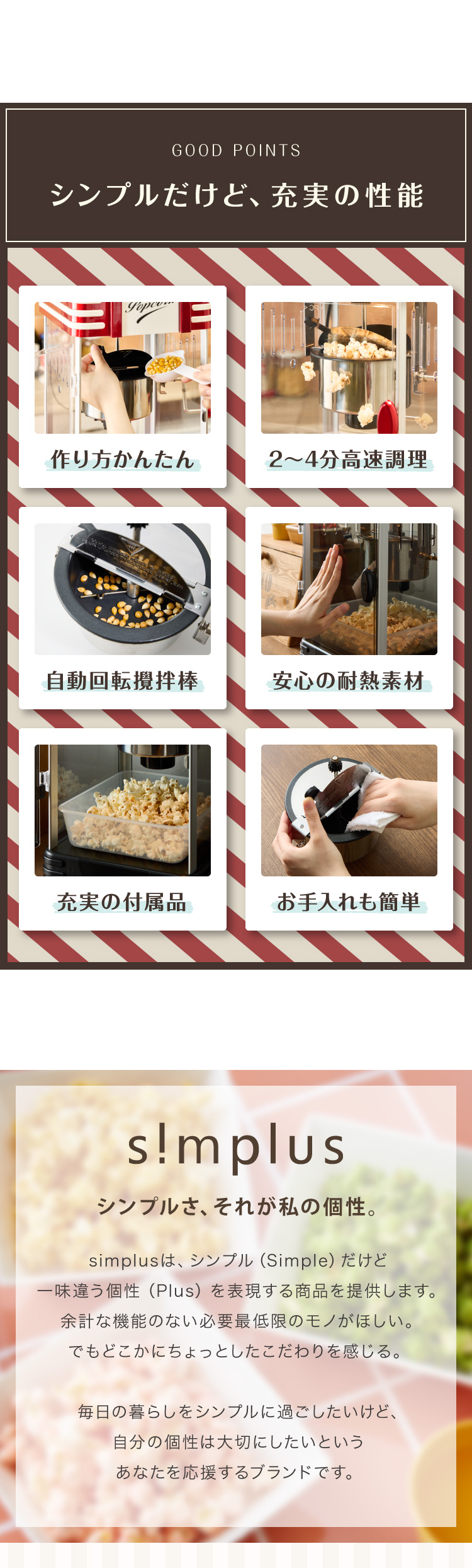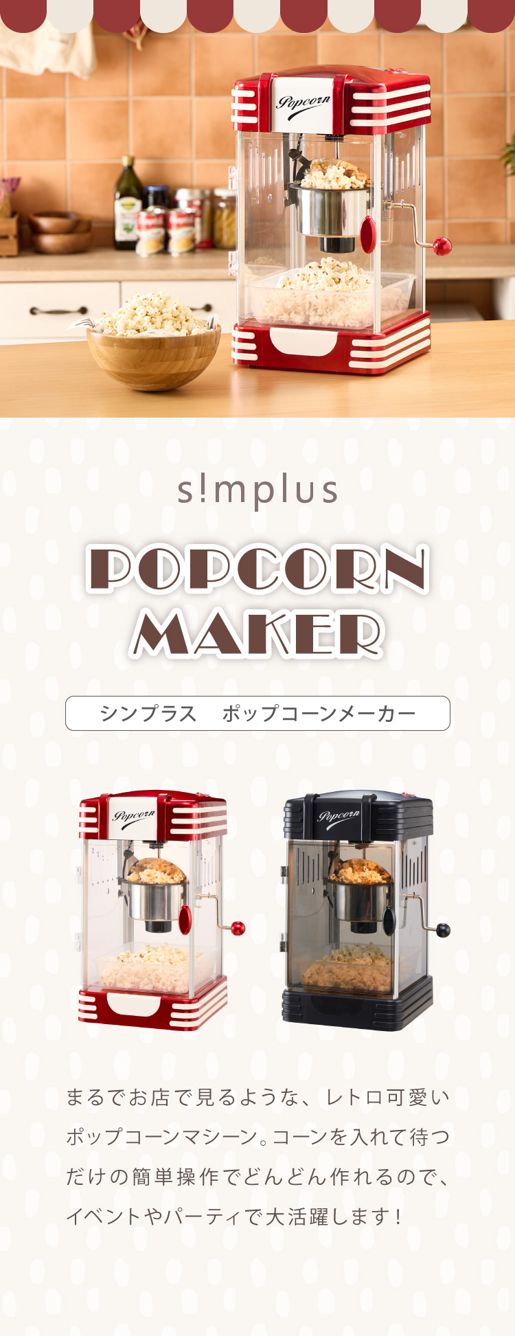 simplus ポップコーンメーカー ポップコーンマシン 味付け 大容量 縁日 お祭り イベント 映画 メーカー保証1年 レビュー報告でポップコーン豆