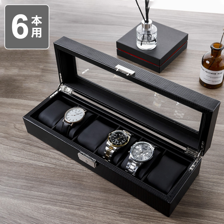 時計収納ケース 6本 レザー ブラック クッション付き おしゃれ インテリア 時計ケース 腕時計 コレクション ウォッチケース 収納ケース