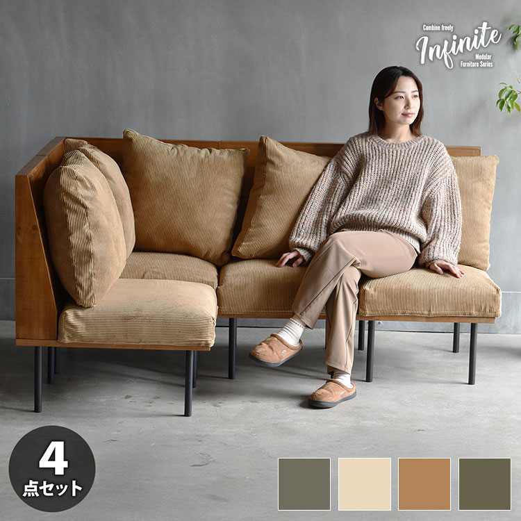 infinite 三人掛けL型ソファー 1Pソファー3脚と肘掛け付きソファ、オットマンの5点セット