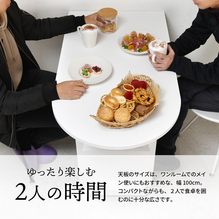 BF DECO ダイニングテーブル 幅100cm 白天板×収納棚付きのコンパクト設計ダイニングテーブル 半円 コンパクト ホワイト 白家具 幅100cm
