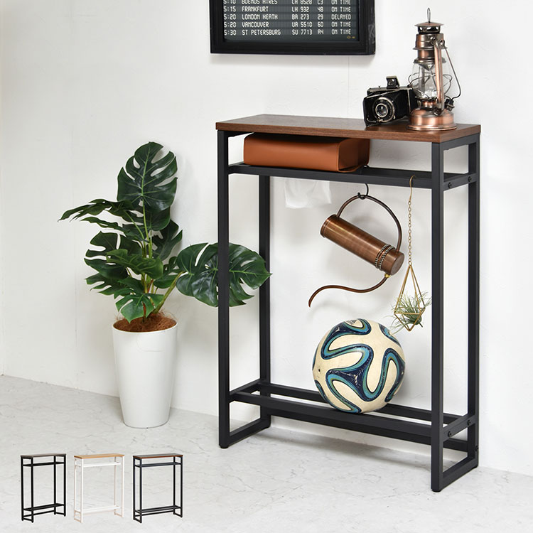 ■エントランスや廊下、リビングで大活躍。廊下やリビングでの観葉植物や鍵などの置き場としても活躍。ちょっとした置き場所が欲しい時に便利なコンソールテーブルです。上下に2本のバーがあるので小物や傘の収納、ボールやスリッパの収納に。