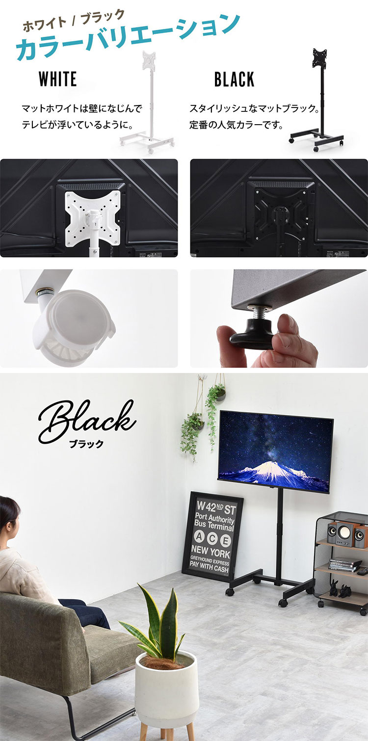 キャスター付きテレビスタンド Alloy 13~42型対応・高さ調節&移動ラクラクテレビスタンド キャスター付き 高さ調節 13型対応 42型対応 VESA対応