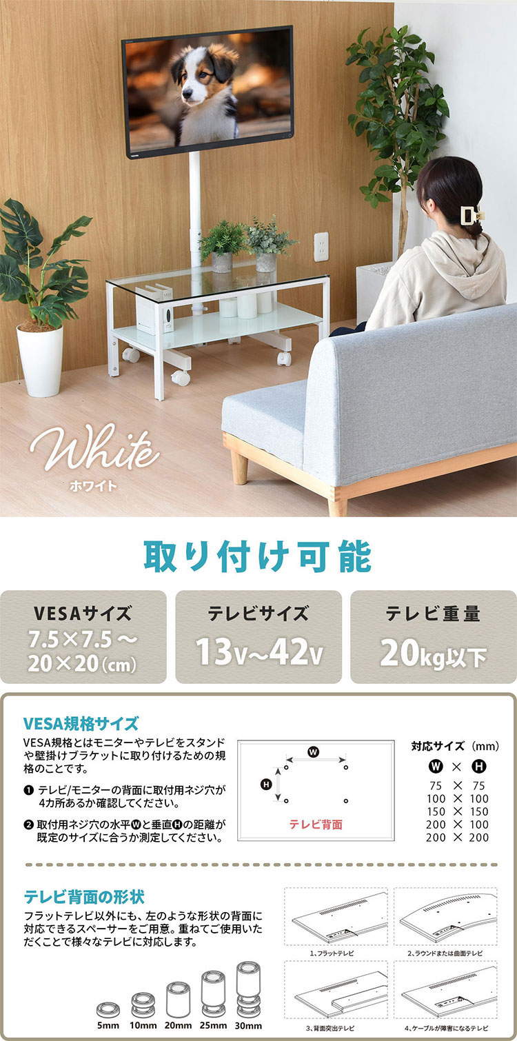 ■素材:スチール(粉体塗装) 【対応テレビ】13-42型 【対応VESA】75×75mm〜200×200mm