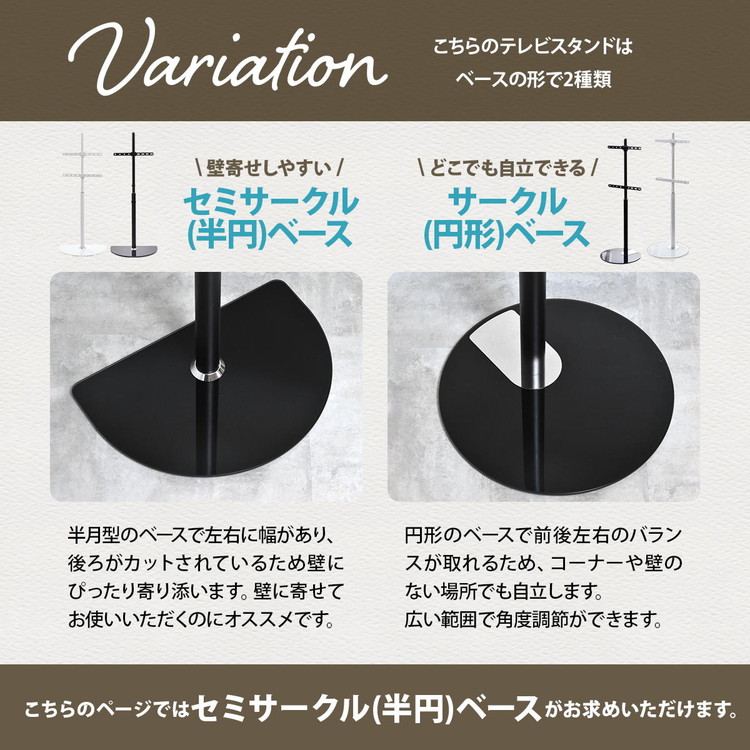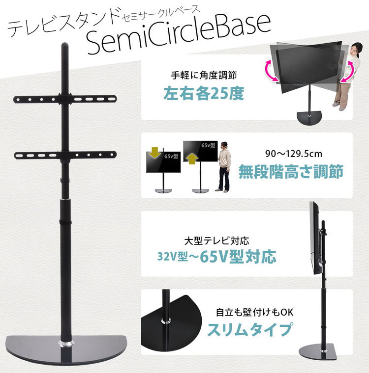 テレビスタンド Semicircle 32~65型対応・首振り×強化ガラス土台のモダン壁寄せタイプテレビスタンド 壁寄せ 首振り機能付き 角度調整可能 32型対応
