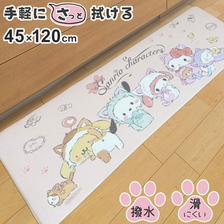 サンリオキャラクターズ PVC キッチンマット 45×120cm ビニール製 撥水 キティハローキティ キッチン用マット 水ぶきOK かわいい おしゃれ 人気 代引不可
