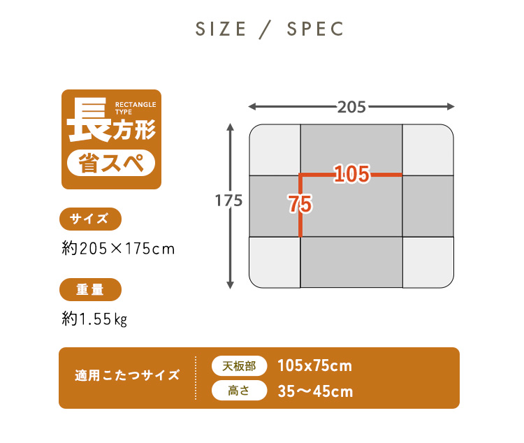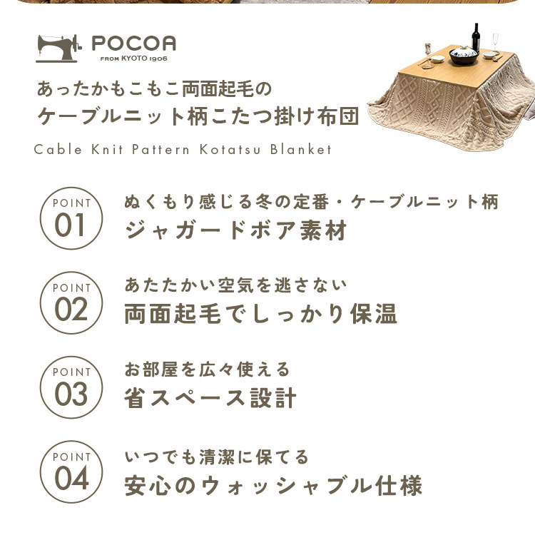省スペースこたつ掛け布団 205×175cm KS-CABLE-S105