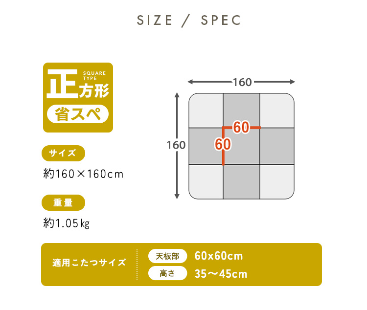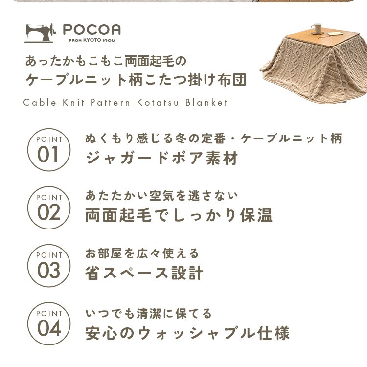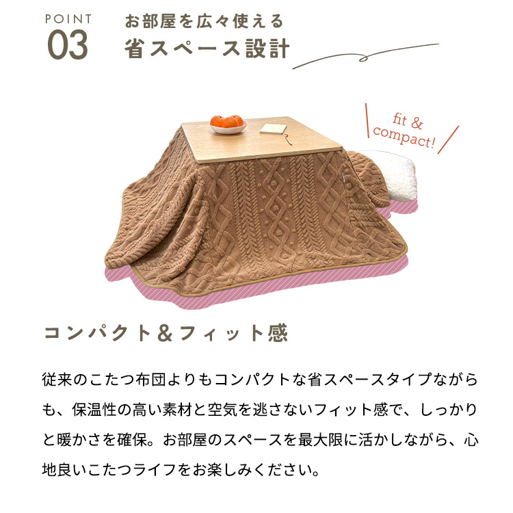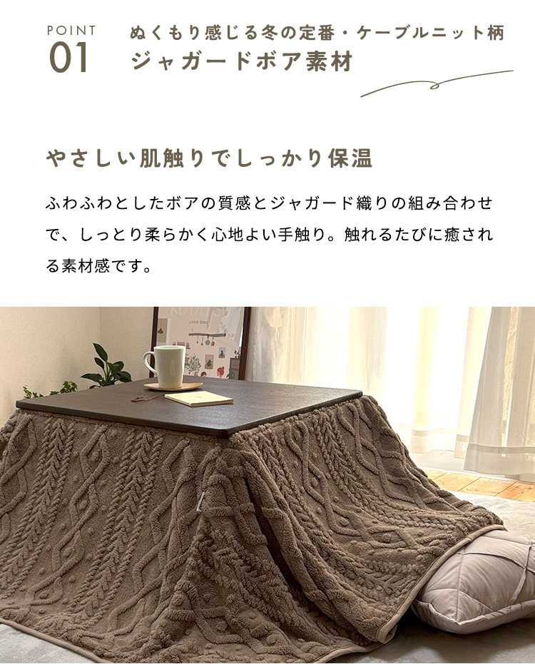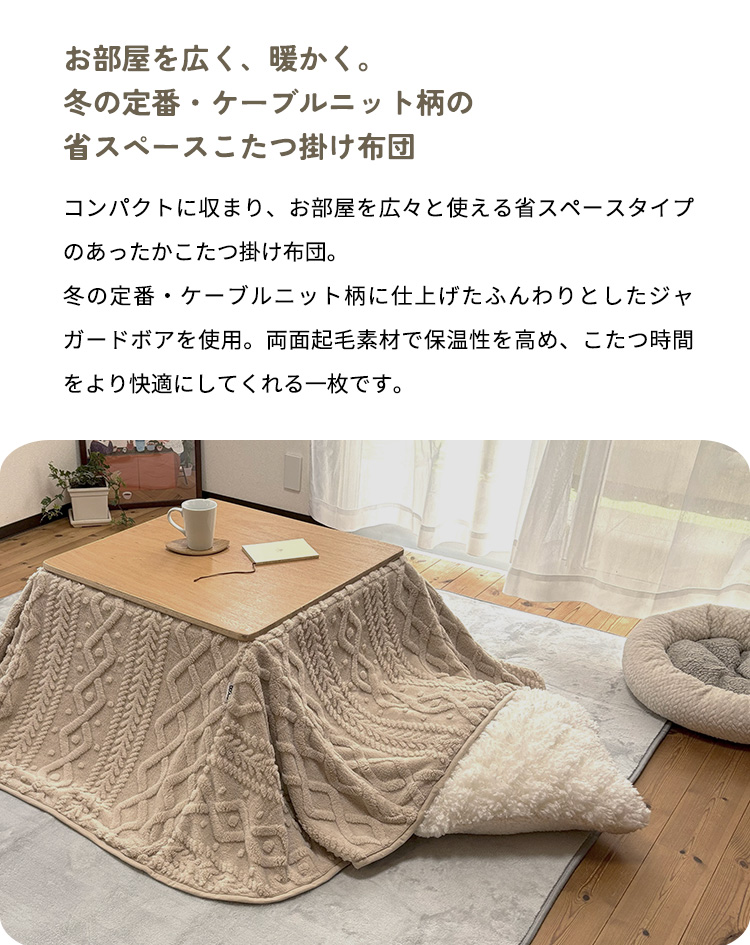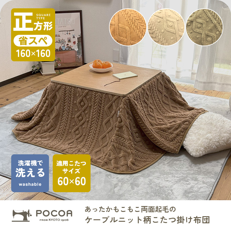省スペースこたつ掛け布団 160×160cm KS-CABLE-S60