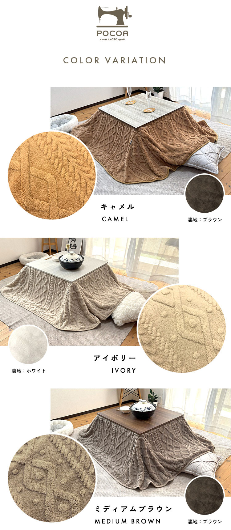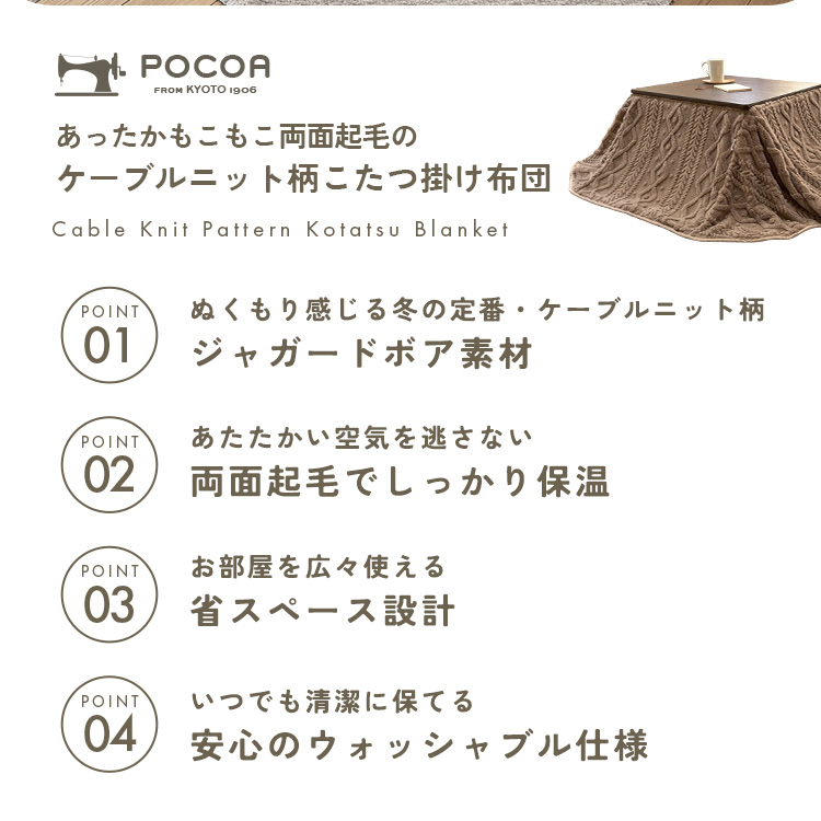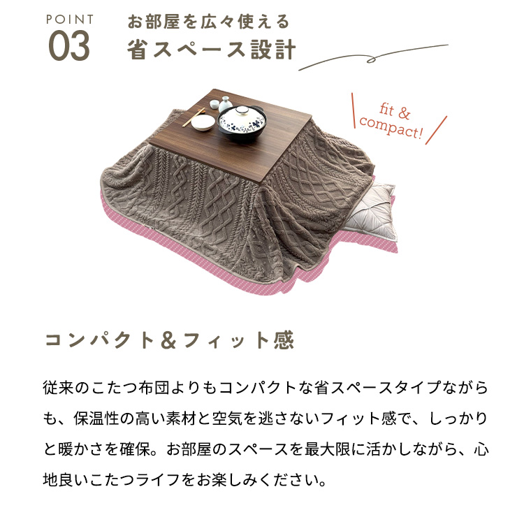 省スペースこたつ掛け布団 175×175cm KS-CABLE-S75
