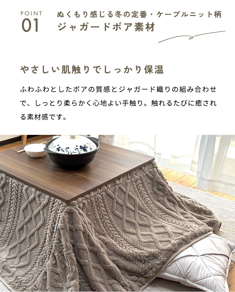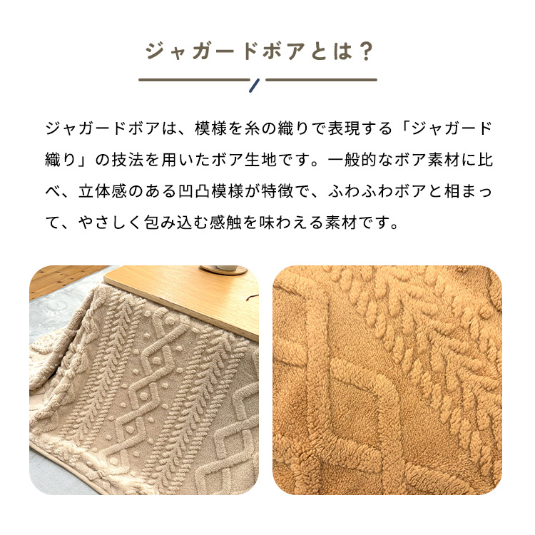 こたつ布団 正方形 175×175cm セーター柄 省スペース 洗える 両面起毛 ジャガードボア ケーブル柄 こたつ掛け布団 ジャガード おしゃれ 代引不可