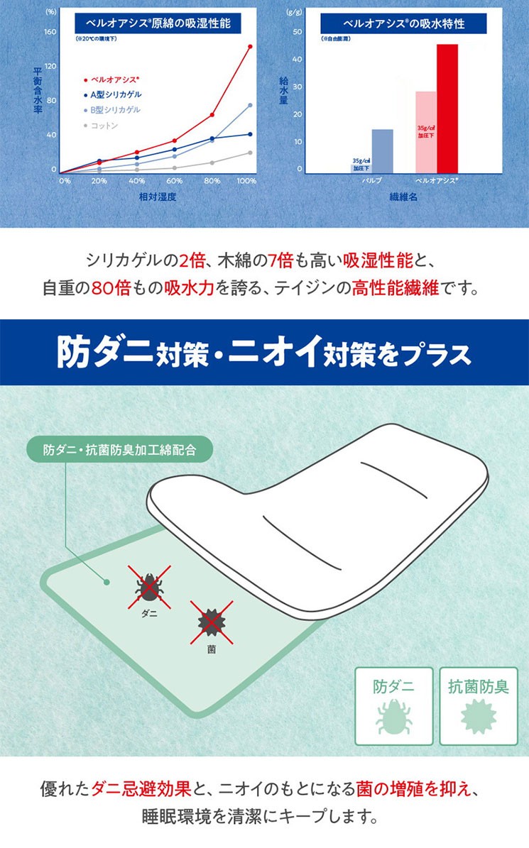 特長:テイジン「快眠ドライ除湿シート」がパワーアップして新登場!