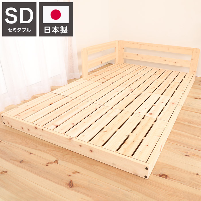 ベッドフレーム セミダブル ピッタリ並べて使えるサイドガード付き国産ひのきすのこベッド ベットフレーム ベッド ベット 寝具 インテリア 家具 代引不可