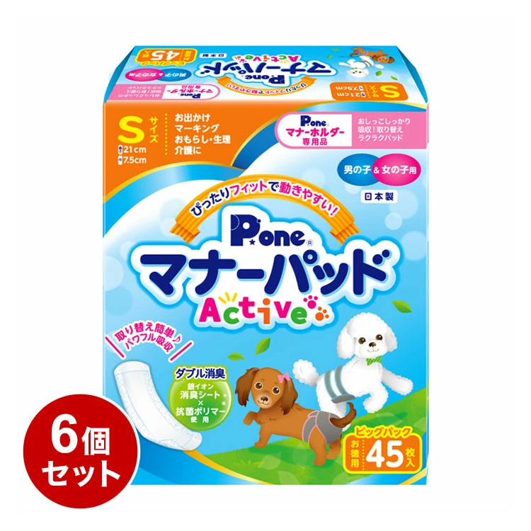 6個セット マナーパッド Active Sサイズ 45枚 ビッグパック PMP-751 犬用 おむつ オムツ トイレ まとめ売り セット売り