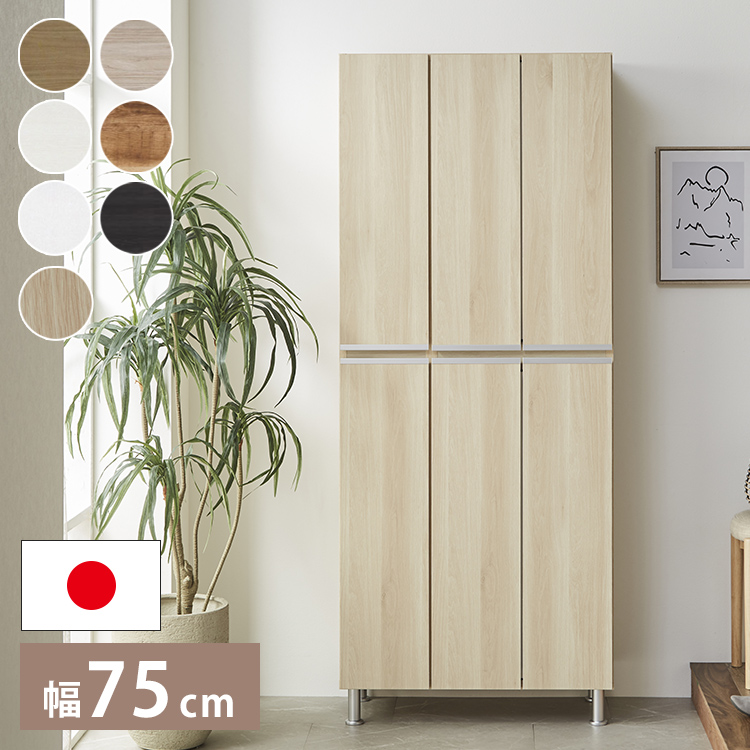 シューズボックス ハイタイプ 幅75cm 国産 大川家具 完成品 板戸 靴収納 靴箱 完成品 下駄箱 玄関収納 シューズラック ラック 北欧 木製 大容量 代引不可
