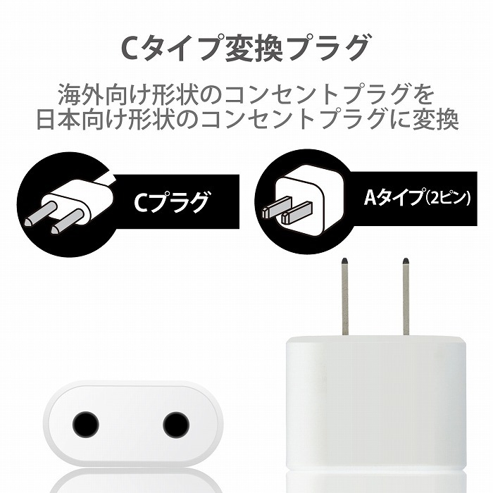 ■中国、インドネシア、ベトナム、フィリピン、イタリアなどから来日された方向けの、Cタイプ変換プラグです。