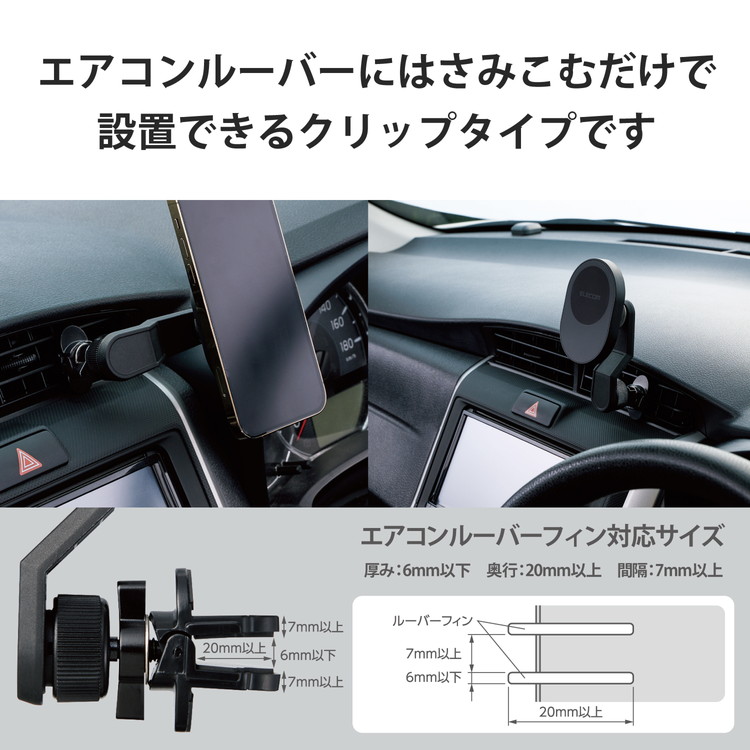 エレコムELECOMマグネット車載スマホホルダーワイヤレス充電器7.5Wエアコンクリップタイプ【MagSafe対応iPhone】車充電器スタンドマグセーフ黒