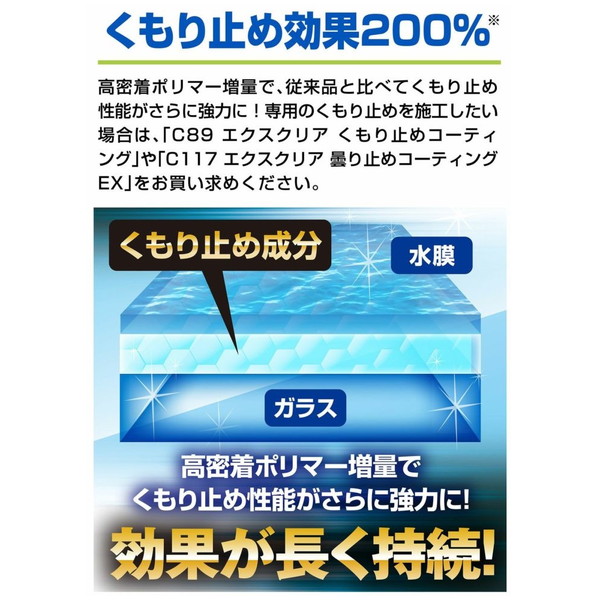 従来品と比較して、くもり止め効果200%!高密着ポリマーを増量し、くもり止め効果がさらに長く持続するようになりました!