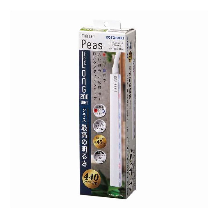 ●クラス最高の明るさ●フレームレス水槽(ガラス厚3・4・5mmの水槽)、枠付き水槽(枠幅16mm以下)対応。●本体カラー:ホワイト●適応水槽幅:約45cm以下●定格電圧:AC100V 50/60Hz●定格消費電力:11W●ボディ長:200ミリ●防サビフレキシブルアーム●個装寸法(mm):W70×D50×H240●全光束:440ルーメン●付属品:ACアダプタ・USBケーブル・枠付き水槽アタッチメント