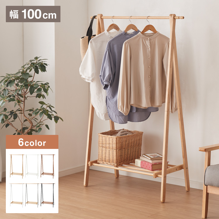 天然木 ハンガーラック 幅100cm 棚付き A型ハンガーラック 折りたたみ 省スペース コンパクト スリム ナチュラル ハンガーラック 木製
