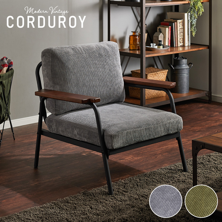 コーデュロイ×スチールの1人掛けソファ