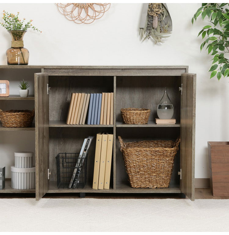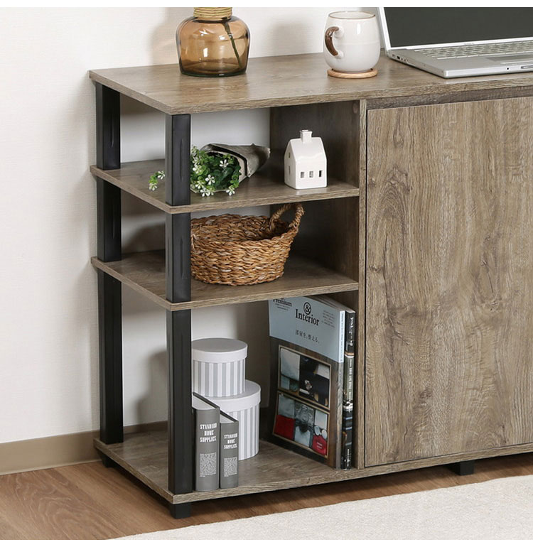 サイドボード 幅119cm 北欧 キャビネット リビングボード アンティーク調 木目調 テレビ台 テレビボード オープン収納 引き戸 収納家具 コンパクト 代引不可