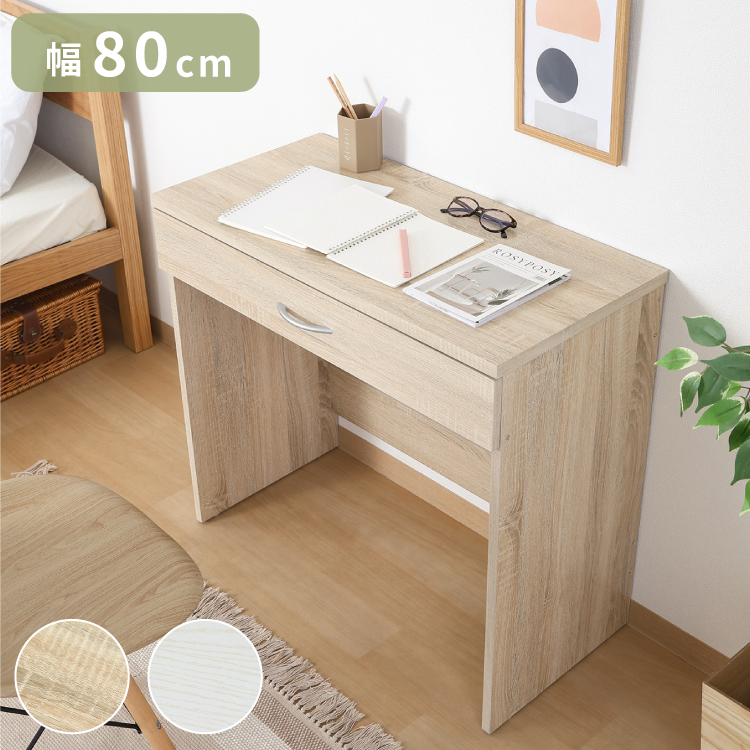 シンプルデスク 幅80cm 引き出し付き コンパクト 木目調 シンプル デスク 勉強机 作業机 おしゃれ ワンルーム 新生活 一人暮らし リモートワーク